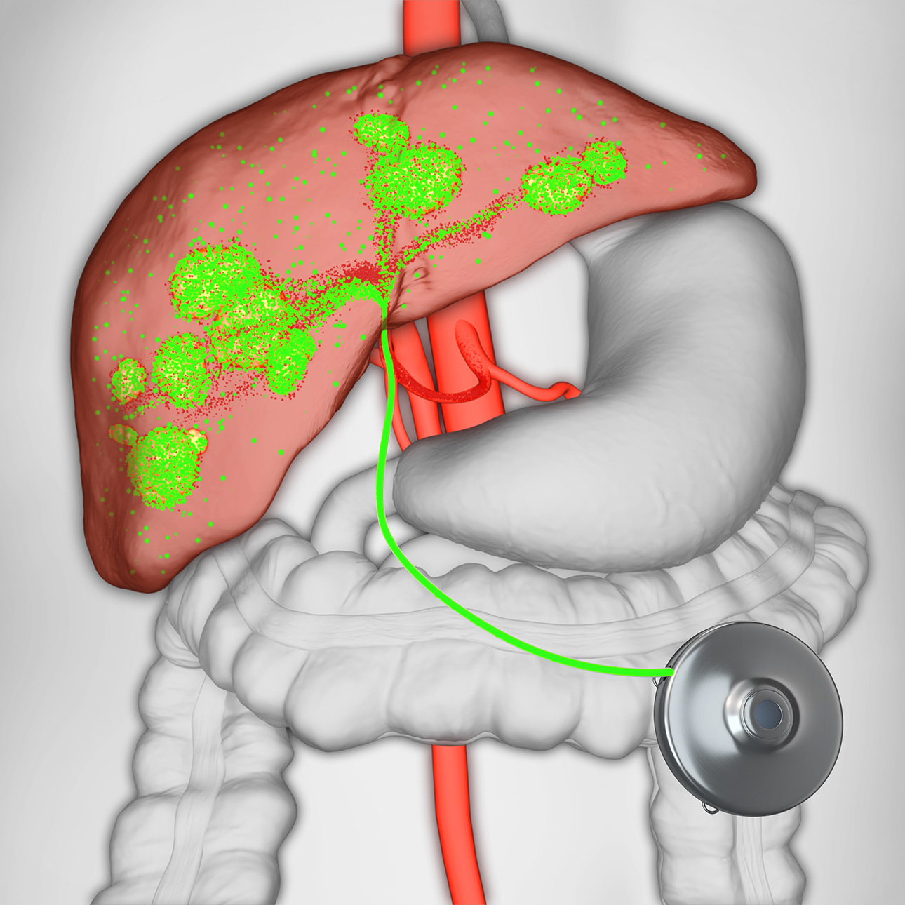 This implanted pump delivers chemotherapy directly to liver tumors, providing an effective treatment option for metastatic colon or bile duct cancer.