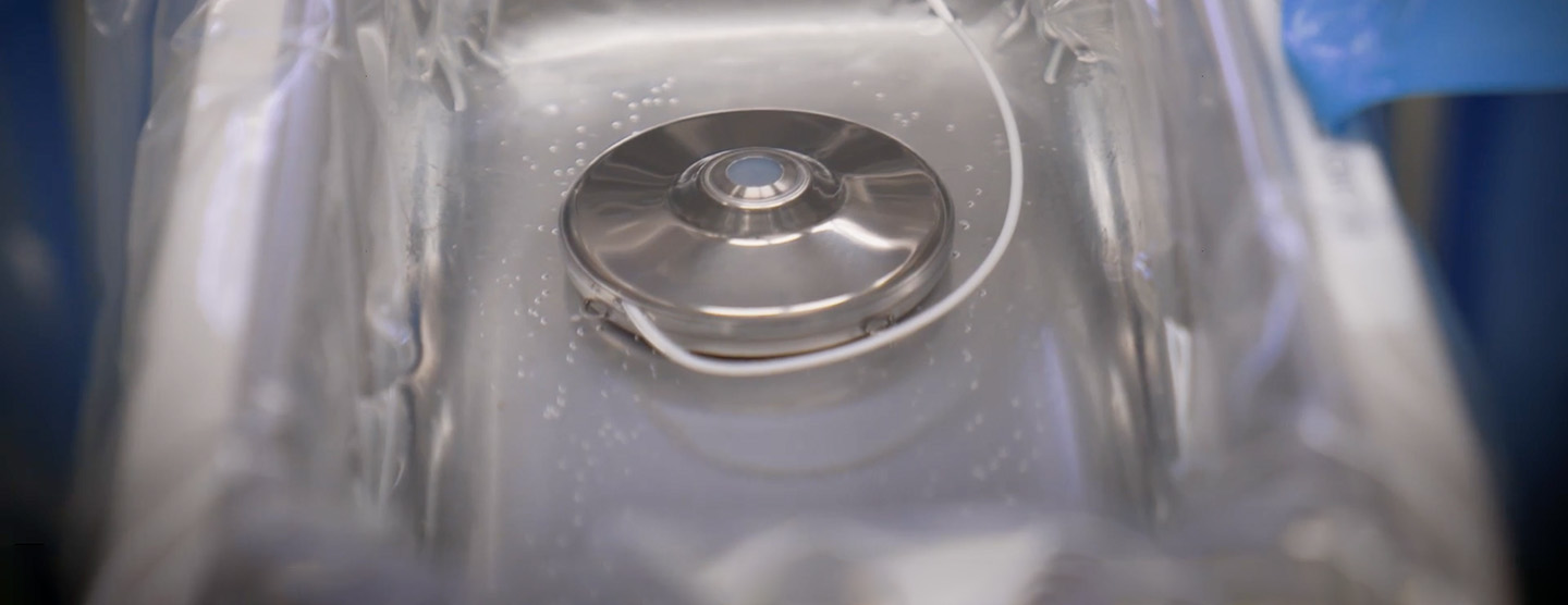 About 3 inches in diameter, the disk resembles a shiny hockey puck when held in the palm of a hand. Before implanting this disease-fighting device in a patient, doctors fill its hollow titanium body with one ounce of liquid: a deadly cocktail for cancer cells invading the liver.